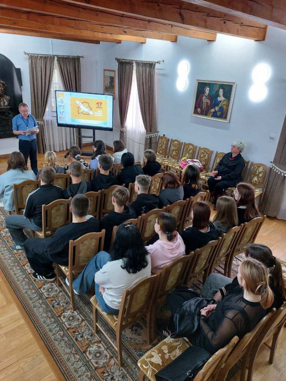 У рамках святкавання Дня народнага адзінства ў Доме-музеі Адама Міцкевіча прайшла лекцыя для студэнтаў Навагрудскага дзяржаўнага каледжа "Будучыня краіны – у адзінстве народа". Гэта падзея стала не толькі магчымасцю паглыбіць веды аб значэнні свята, але і пляцоўкай для абмеркавання найважнейшых пытанняў, якія датычацца адзінства і згуртаванасці нашага грамадства.